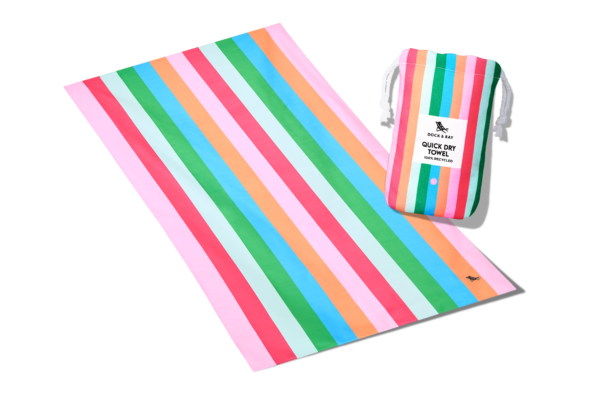 Made from our premium 100% recycled DryQ™ fabric, it dries much faster than standard cotton towels and won’t hold onto damp smells. Sand shakes straight off, it packs down small into its iconic pouch, and it’s ready to go again in no time.